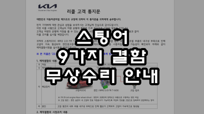 이번시간에는 스팅어 차량의 결함정보를 하나씩 알아보는 시간을 갖도록 하겠습니다.