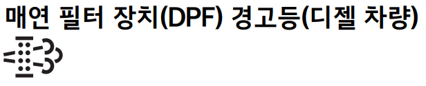 디젤 차량의 매연 필터 장치에 이상이 생긴 경 우 매연 필터 장치(DPF) 경고등이 켜집니다.