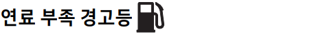 연료의 잔류량이 적을 때 경고등이 켜지며 경고등이 켜지면 바로 가까운 주유소를 방문하여 연료를 보충하여야 합니다.