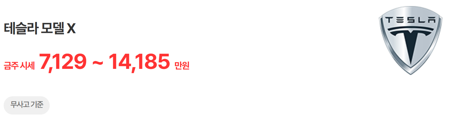 모델 X 중고차 시세표