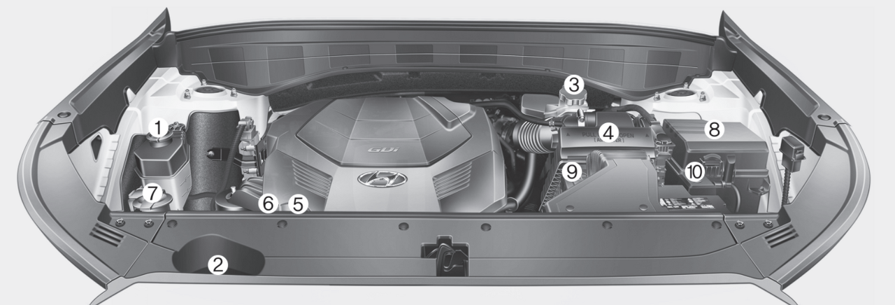 | 2. 와셔액 탱크 | 7. 브레이크액 탱크 |