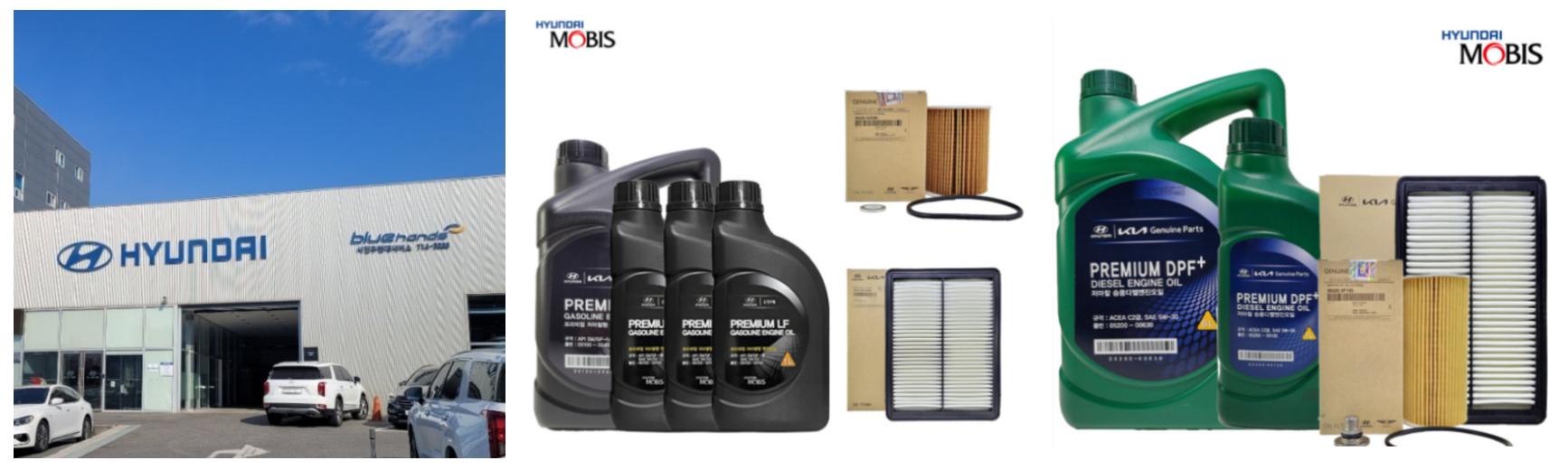 시간이 지나면서 엔진 오일의 윤활, 방청, 냉각, 세정 효과는 감소합니다. 정기 점검 주기표를 따라 자사 직영 하이테크센터나 블루핸즈에서 엔진 오일과 필터를 교체합니다.