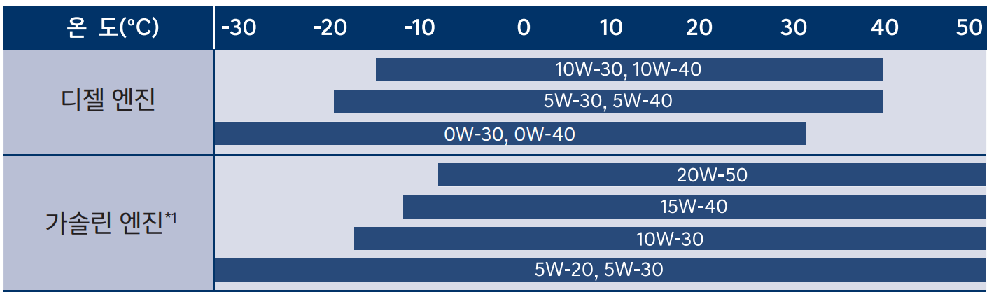 엔진 오일 점도표