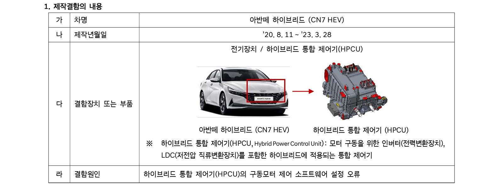 하이브리드 통합 제어기(HPCU) 관련 리콜