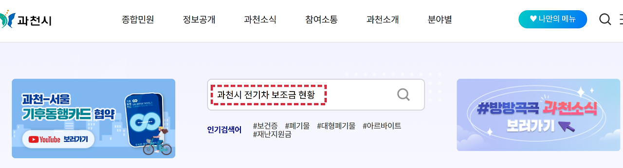 전기자동차 신차 출고 보조금 조회 - 경기도 과천시