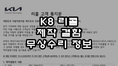 이번시간에는 K8 차량의 제작 결함으로 인하여 무상 수리 정보를 안내드리고자 합니다.