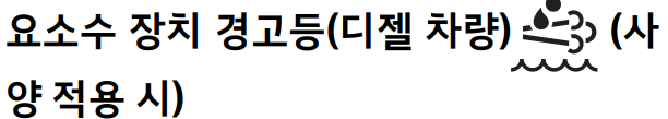 요소수의 양이 부족하거나 요소수 장치에 이 상이 생기면 경고등이 켜지며 반드시 요소수를 보충하셔야 하며 정식 센터에서 공급하는 요소수 충전을 추천드립니다.
