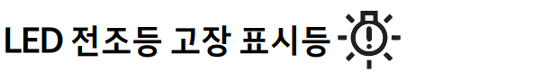 LED 전조등에 이상이 있으면 표시등이 켜지며 관련 부품에 이상이 있으면 표시등이 깜빡 입 니다. 표시등이 켜져 있거나 깜빡이는 상태로 계속 주행하게 되면 LED 전조등 수명이 단축될 수 있습니다.